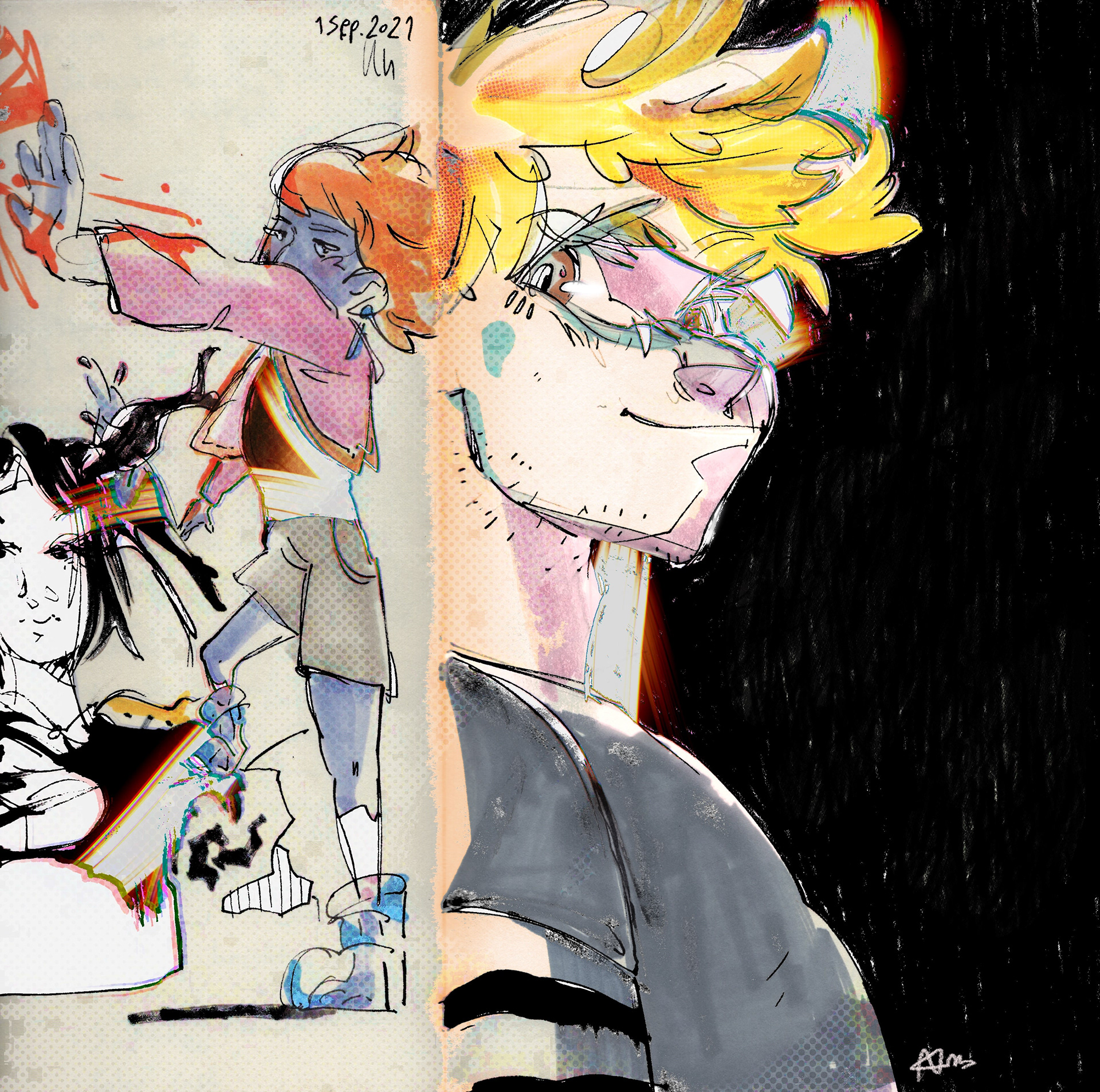 A series of works based on scans of my 16th sketchbook, made during December 2020.